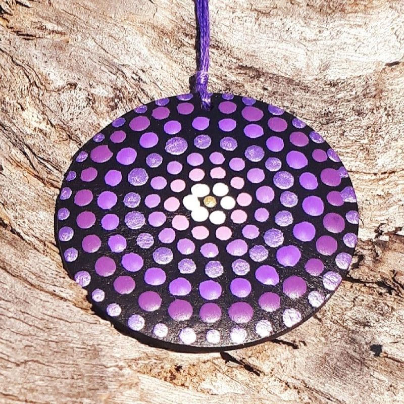 This is a beautiful hand-painted unique dot mandala necklace has been painted on a wooden disk.